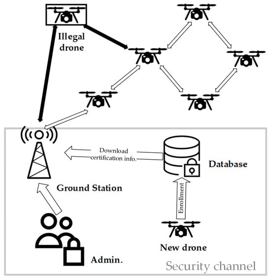 - Alladi, T.; Naren; Bansal, G.; Chamola, V.; Guizani, M. SecAuthUAV: A Novel Authentication Scheme for UAV-Ground Station and UAV-UAV Communication. IEEE Trans. Veh. Technol. 2020, 69, 15068–15077. [Google Scholar] [CrossRef]