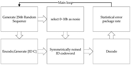 - Mutual authentication: The GS judges the legality of the drone based on whether or not the drone correctly decodes the . The drone judges the legality of the GS based on comparing the with the power-up response , and since the number of erroneous bits added by the GS is not large, the should have a similarity to the higher than 98.8% (see Figure 6 for the ECC performance of this paper).