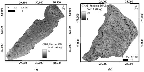 Canopy Height Model of sub-compartments: (a) 42B, (b) 16AB.