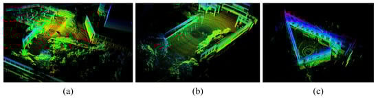 Point cloud maps of NTU dataset are shown. (a–c) are rtp sequences, sbs sequences, and tnp sequences, respectively.