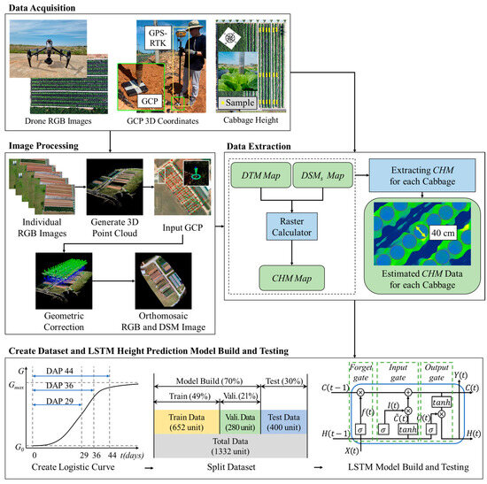 2.2. Workflow for the Early Prediction of Kimchi Cabbage Heights Using Drone Imagery and the LSTM Model