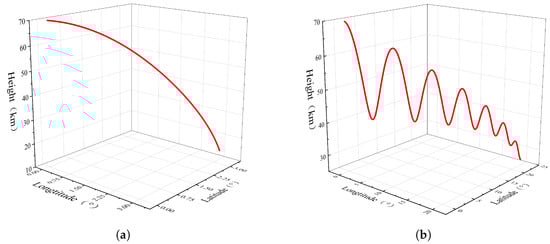 Figure 12b depicts the two-dimensional plot of the predicted and actual trajectories in terms of latitude and height.