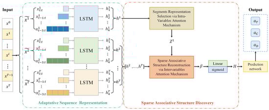 The SASM model, as devised in this paper, is structured into four components. Initially, the trajectory data are fed into the sequence representation module, which comprises an adaptive max pooling layer, an LSTM hidden layer, and a dropout layer. The adaptive length of the adaptive max pooling layer is 900. The LSTM has 10 hidden nodes, and the dropout rate is 0.2. Following separate processing through intravariable and intervariable attention mechanisms, the associative structural representation was obtained. The input and output feature dimensions of the attention network were both 10. Finally, this representation was input into the predictive network, from which future parameters were predicted. The predictive network was constructed with a 1D batch normalization layer, a linear layer, a ReLU activation layer, and a dropout layer. The size of the linear layer was set to 50.