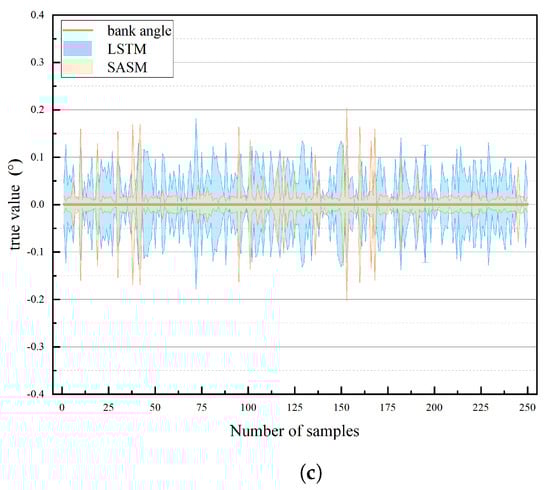 Figure 9c demonstrates a notably smaller error band for the SASM model, compared to LSTM. While it is true that the LSTM model exhibited superior performance at certain, albeit rare, data points, the overall trend highlights the SASM model’s advantage in terms of consistency and precision in predictions.