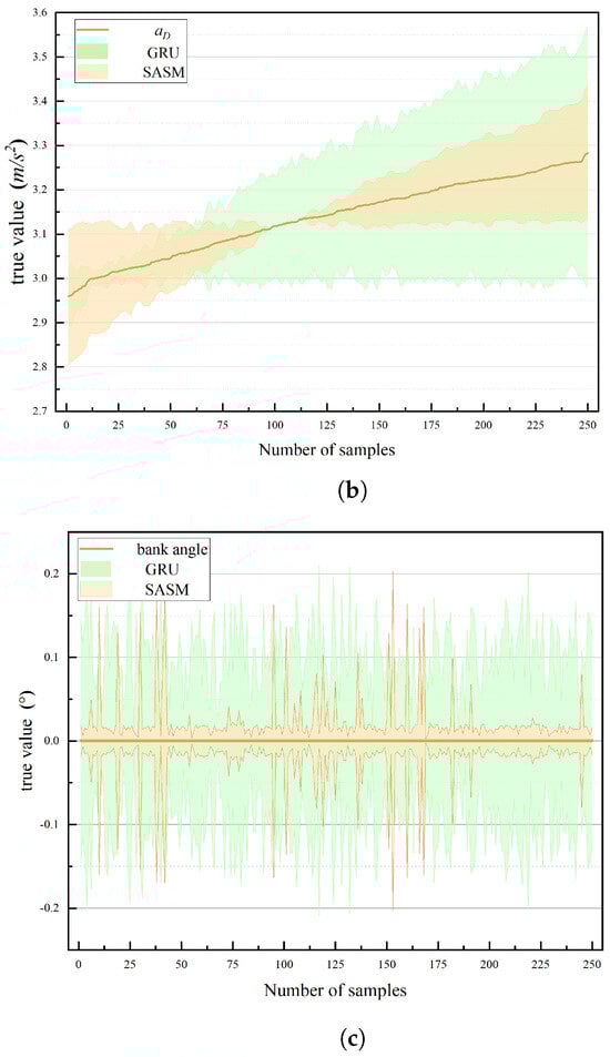 Figure 9a–c illustrate the error curve when predicting the aerodynamic lift acceleration
