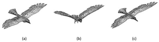 Bird 3D models. (a) pigeon, (b) falcon, and (c) seagull.
