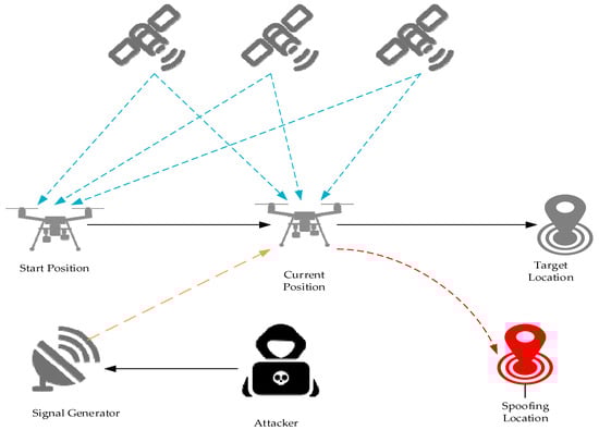 - Wang, S.; Wang, J.; Su, C.; Ma, X. Intelligent Detection Algorithm Against UAVs’ GPS Spoofing Attack. In Proceedings of the 2020 IEEE 26th International Conference on Parallel and Distributed Systems (ICPADS), Hong Kong, 2–4 December 2020; pp. 382–389. [Google Scholar] [CrossRef]