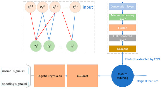 The structure of this paper is as follows: Section 2 reviews related works, highlighting recent advancements in GPS spoofing detection for UAVs. Section 3 outlines the proposed CNN-XGBoost model’s architecture, covering its design and functionality. Section 4 explains the experimental design, covering data preparation, feature selection, evaluation metrics, and result analysis. Section 5 examines the model’s strengths and weaknesses, and potential areas for future research. Section 6 summarizes the main findings and their significance.