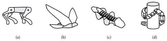 - Shah, D.S.; Powers, J.P.; Tilton, L.G.; Kriegman, S.; Bongard, J.; Kramer-Bottiglio, R. A soft robot that adapts to environments through shape change. Nat. Mach. Intell. 2020, 3, 51–59. [Google Scholar] [CrossRef]