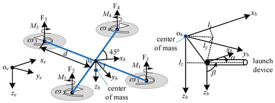 2. Establishment of a Quadrotor UAV Model with a Launch Device