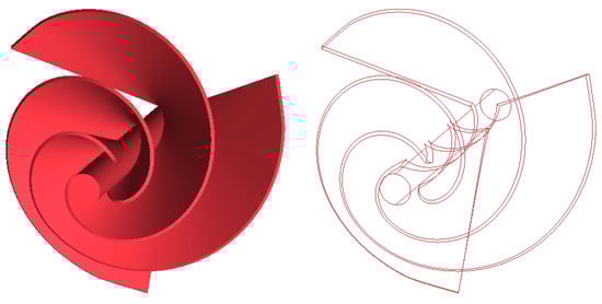 In this study, the research object is an ASHT, which consists of a cylindrical shaft containing three blades. Each blade has a radius of 125 mm and is arranged at an angle of 120 degrees. A schematic diagram of the original ASHT is presented in Figure 2.