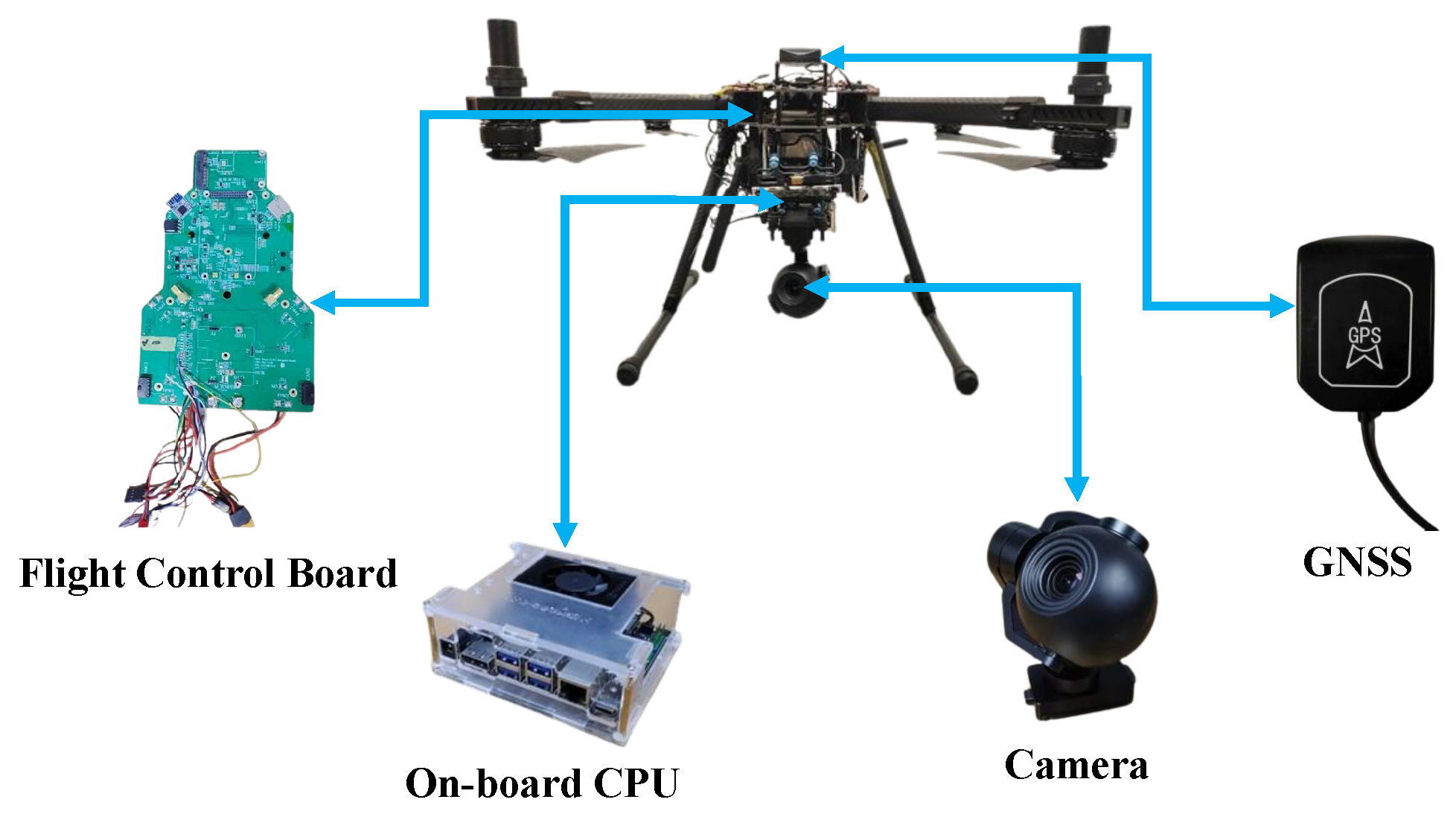 For bird’s nest detection, Ref. [4] proposed an optimized model based on YOLOv5s, which was deployed on a UAV, achieving 33.9 Frames Per Second (FPS) and an accuracy of 92.1%. Similarly, Ref. [5] presented another optimization of YOLOv5s for the same task, reporting a higher detection accuracy of 98.23%. However, these methods lack validation in real flight scenarios, and their real-time performance was not evaluated. For insulator defect detection, various deep learning-based approaches have been proposed. Ref. [6] introduced a multi-scale detection method based on the Detection Transformer; Ref. [7] developed a lightweight model based on an improved YOLOv7; Ref. [8] enhanced YOLOv5s by incorporating the Generalized Intersection over Union (GIoU) loss function, Mish activation, and the CBAM; Ref. [9] further proposed LiteYOLO-ID, a lightweight insulator defect detection model based on an improved YOLOv5s architecture; Ref. [10] combined deep learning with transfer learning to improve defect detection performance under complex environmental conditions. Additionally, Refs. [11,12] proposed YOLOv5-based methods for detecting insulators and surface damage, which were validated using simulated datasets.