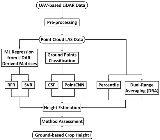 Du, P.; Wang, J.; Shan, B. Comparison of Regression, Classification, Percentile Method and Dual-Range Averaging Method for Crop Canopy Height Estimation from UAV-Based LiDAR Point Cloud Data. Drones 2025, 9, 683. https://doi.org/10.3390/drones9100683