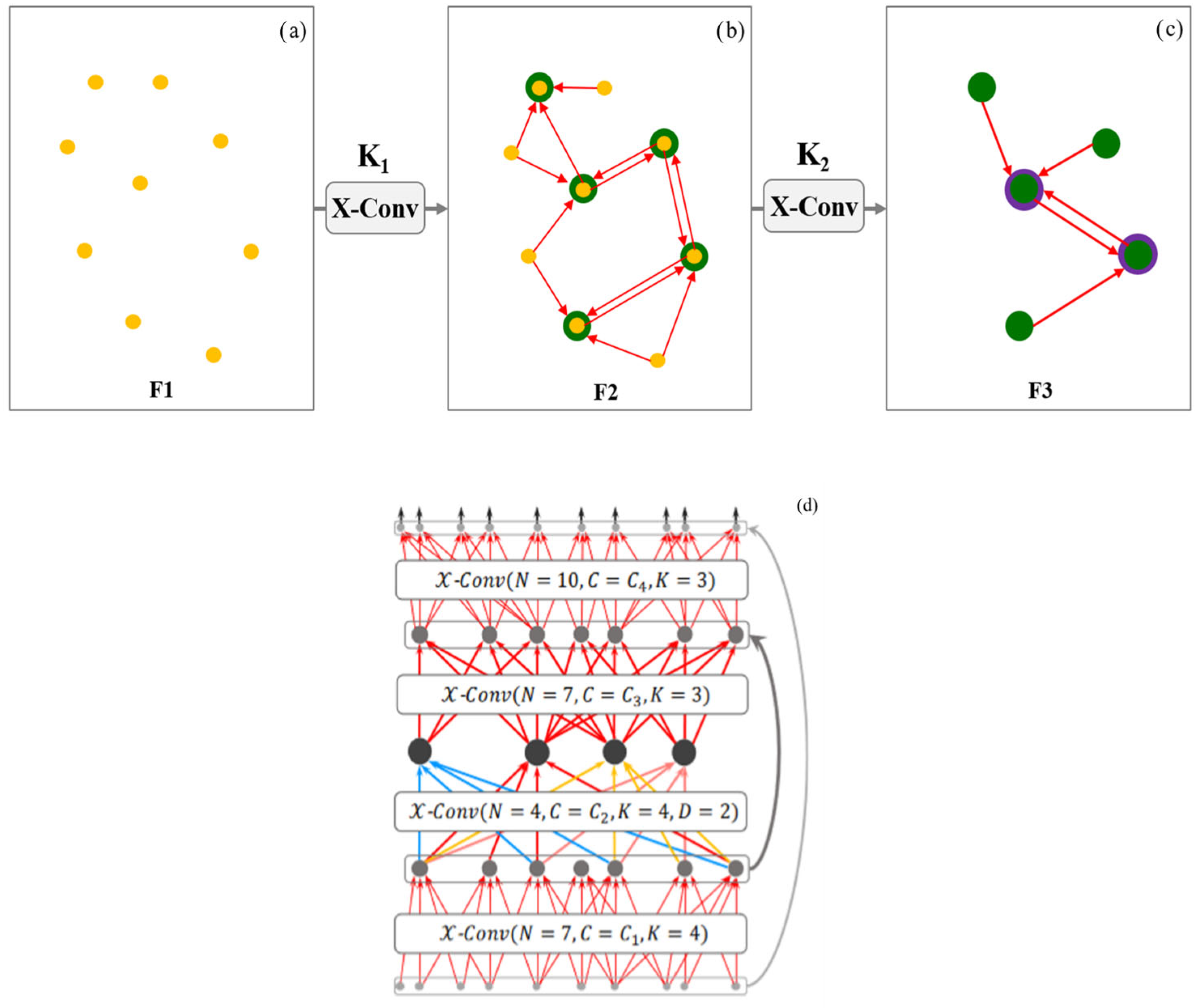 - Li, Y.; Bu, R.; Sun, M.; Wu, W.; Di, X.; Chen, B. PointCNN: Convolution On X-Transformed Points. In Advances in Neural Information Processing Systems; Bengio, S., Wallach, H., Larochelle, H., Grauman, K., Cesa-Bianchi, N., Garnett, R., Eds.; Curran Associates, Inc.: Red Hook, NY, USA, 2018; Volume 31. [Google Scholar]
