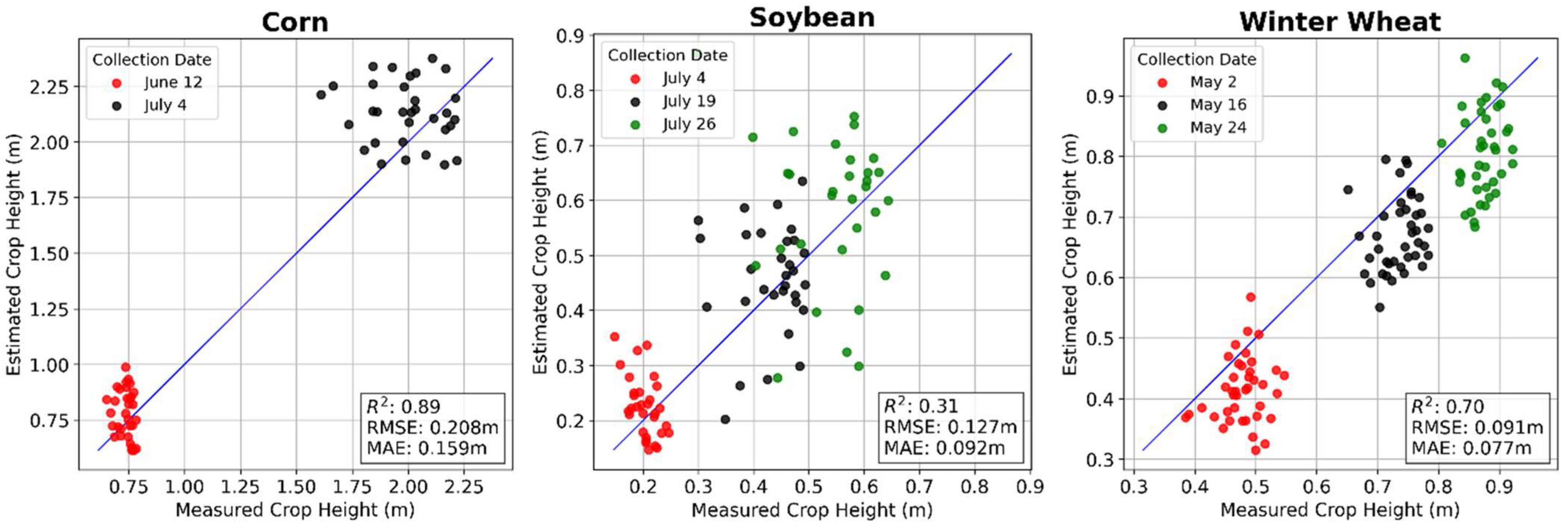 4.1. Performance Comparison of Crop Height Estimation Methods