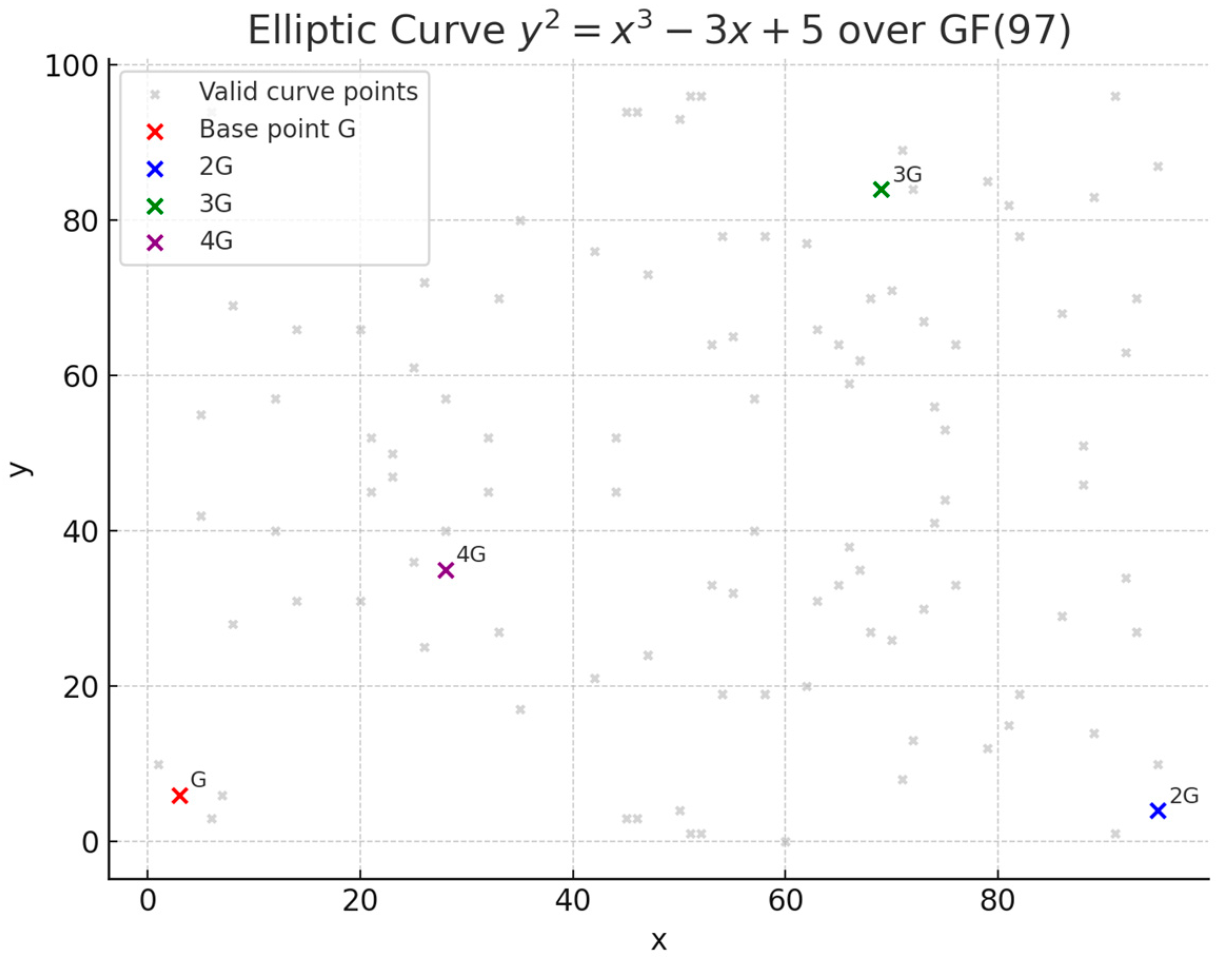 Cryptographic Attacks | ECDLP solving, hash collisions, random number weaknesses | NIST P-256 curve (128-bit security), SHA-256 hash, proper entropy collection |