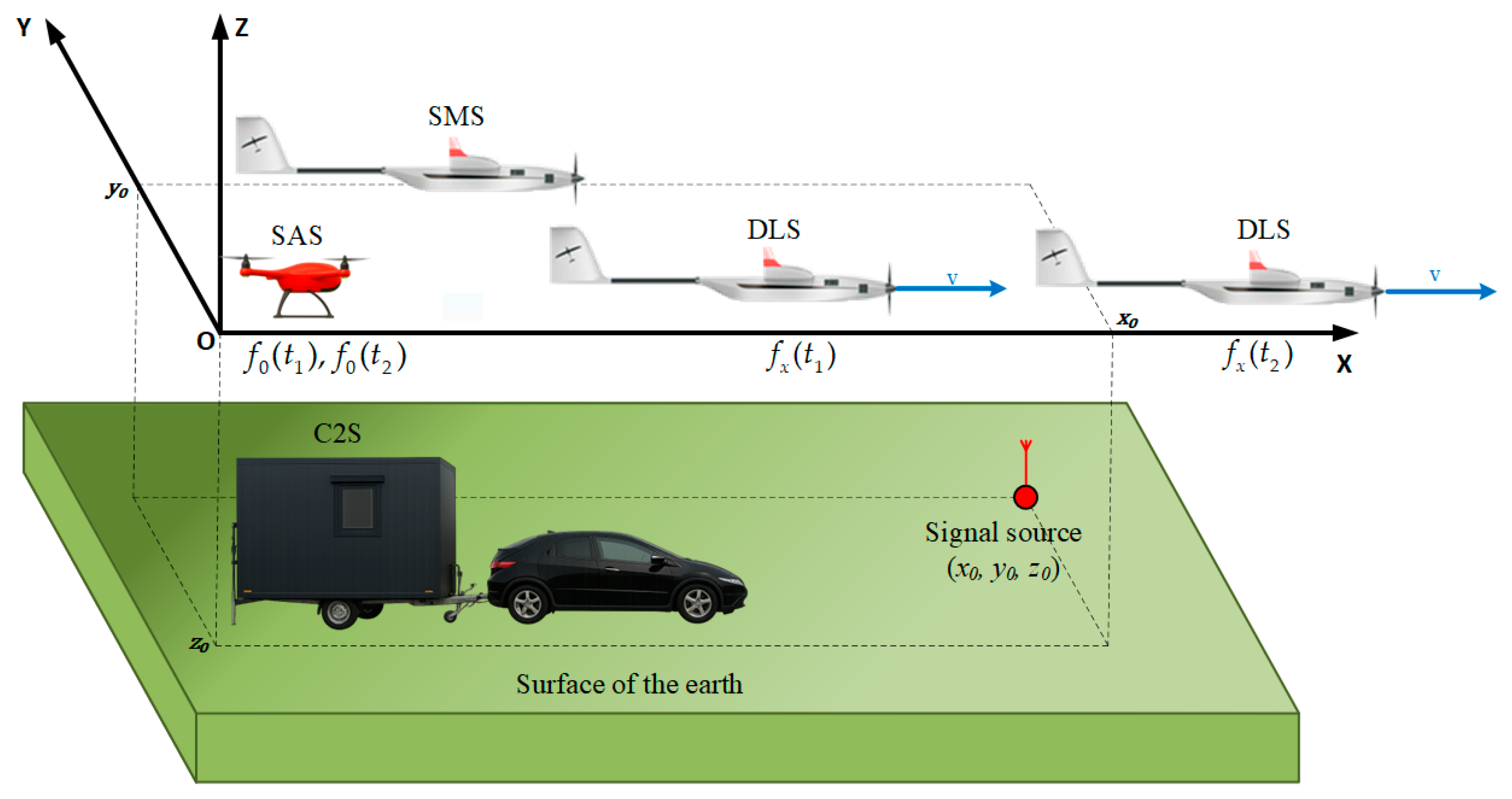 - Pei, Y.; Li, X.; Guo, F.; Zhang, M. Moving Source Localization Using Frequency Difference of Arrival Measurements Only. IEEE Trans. Veh. Technol. 2025, 74, 1052–1063. [Google Scholar] [CrossRef]