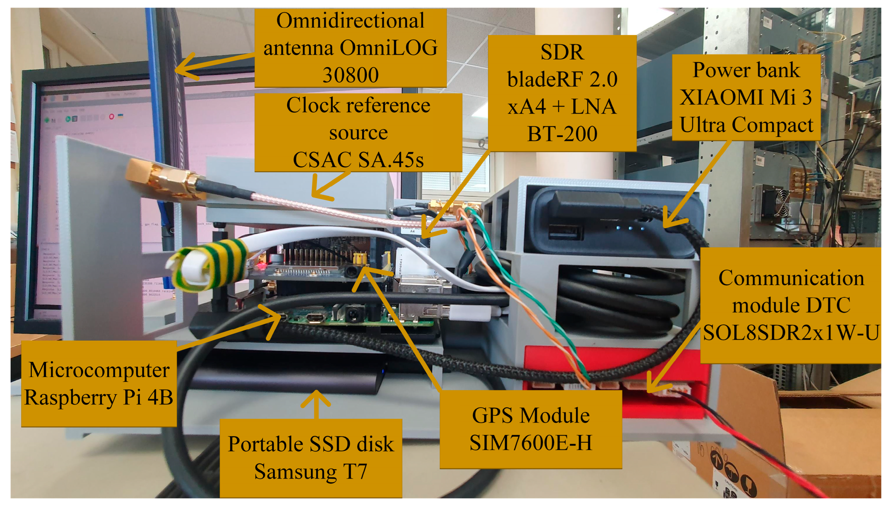 - Raspberry Pi 4B microcomputer connected to the SDR platform, responsible for its control, as well as acquisition and processing of the received signal;