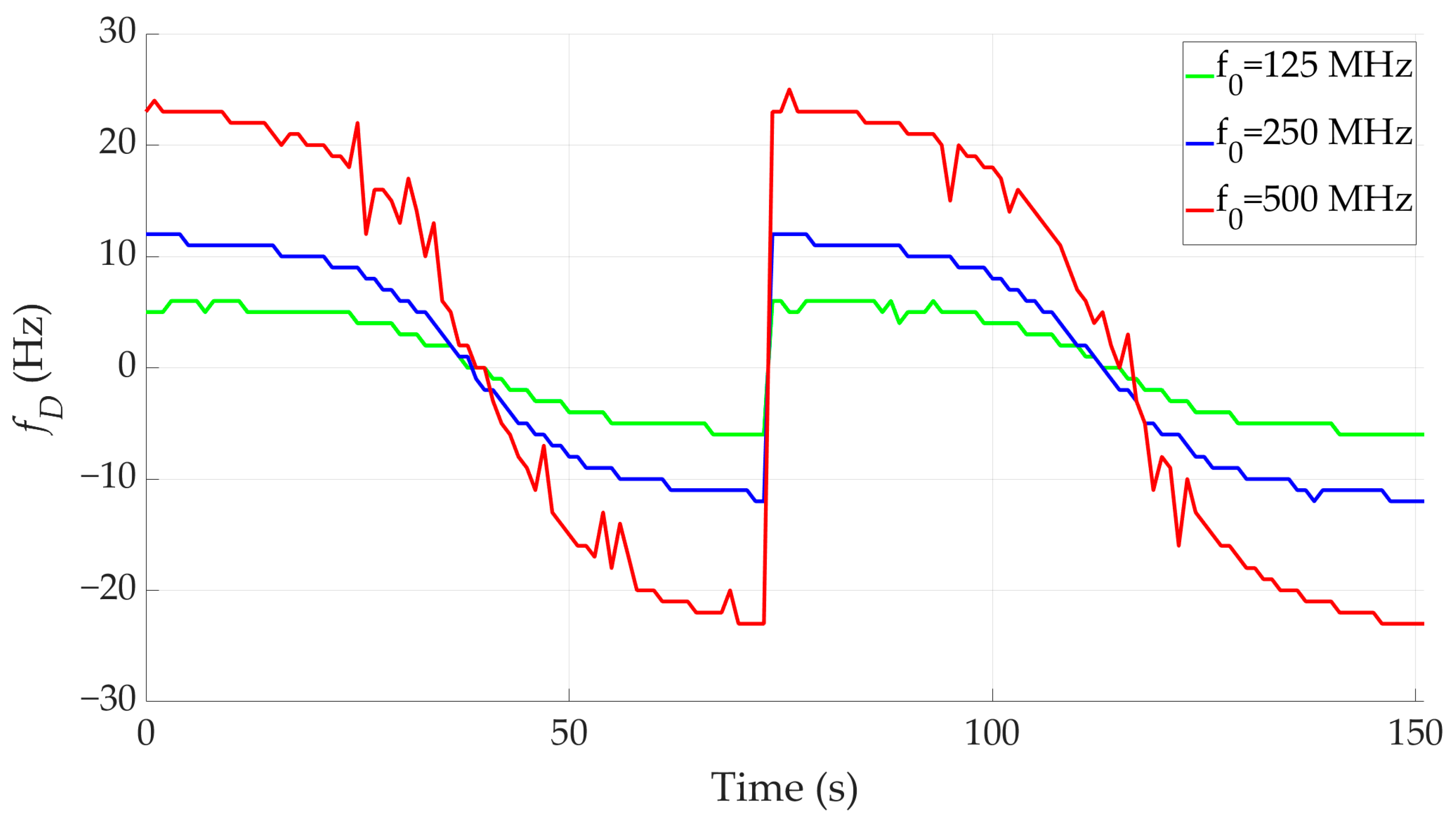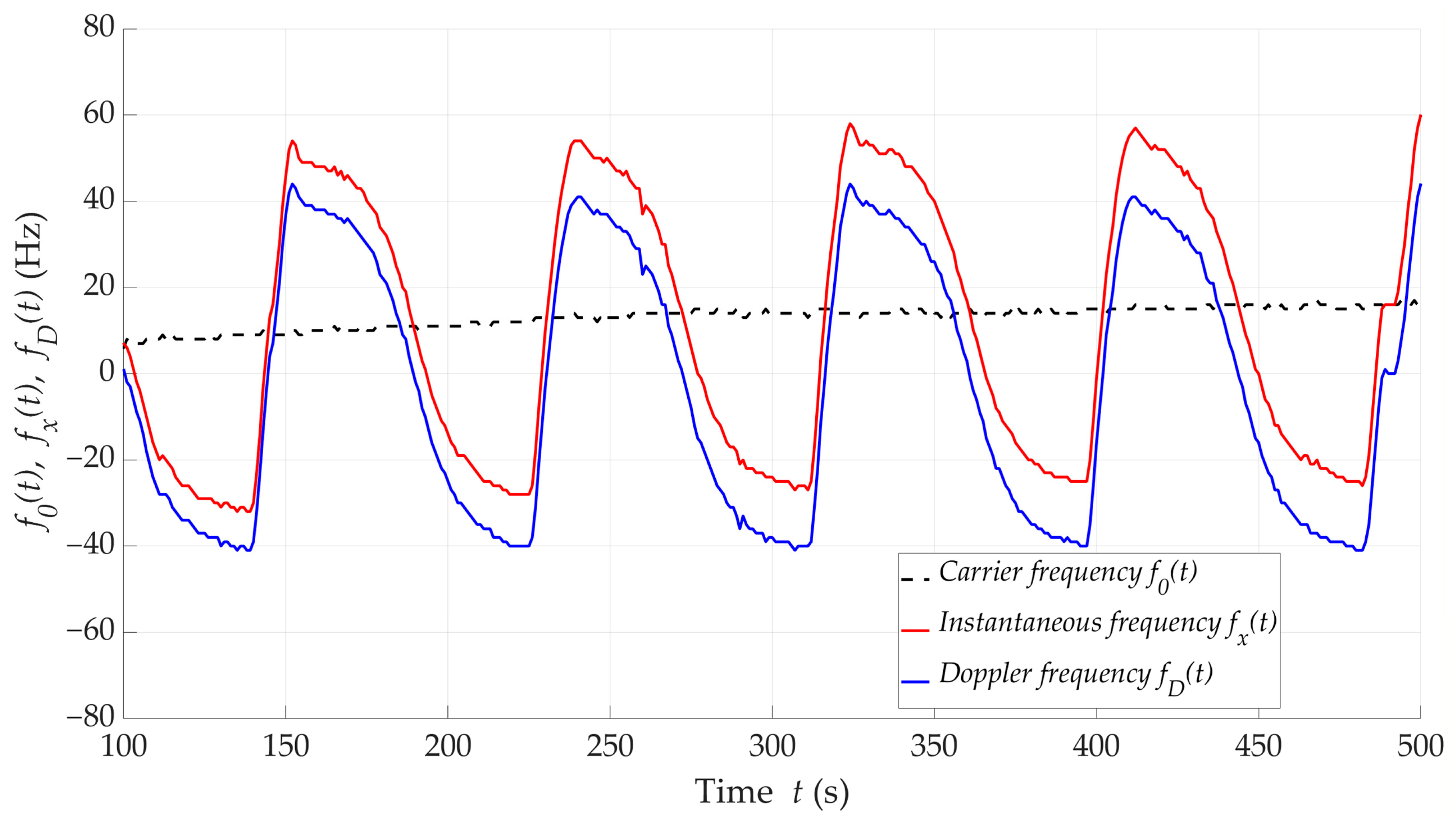 - Rafa, J.; Ziółkowski, C. Influence of Transmitter Motion on Received Signal Parameters—Analysis of the Doppler Effect. Wave Motion 2008, 45, 178–190. [Google Scholar] [CrossRef]