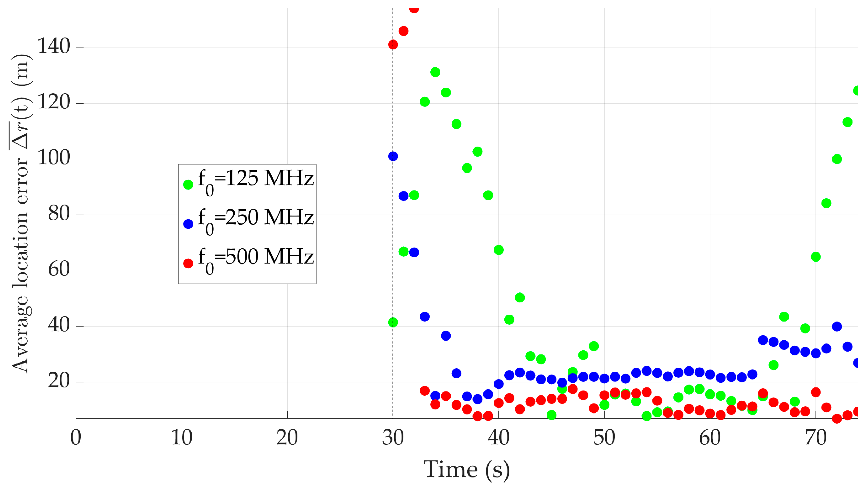 Acquisition Time (s) | Tested Carrier Frequency (MHz) | Location Error (m) | |||