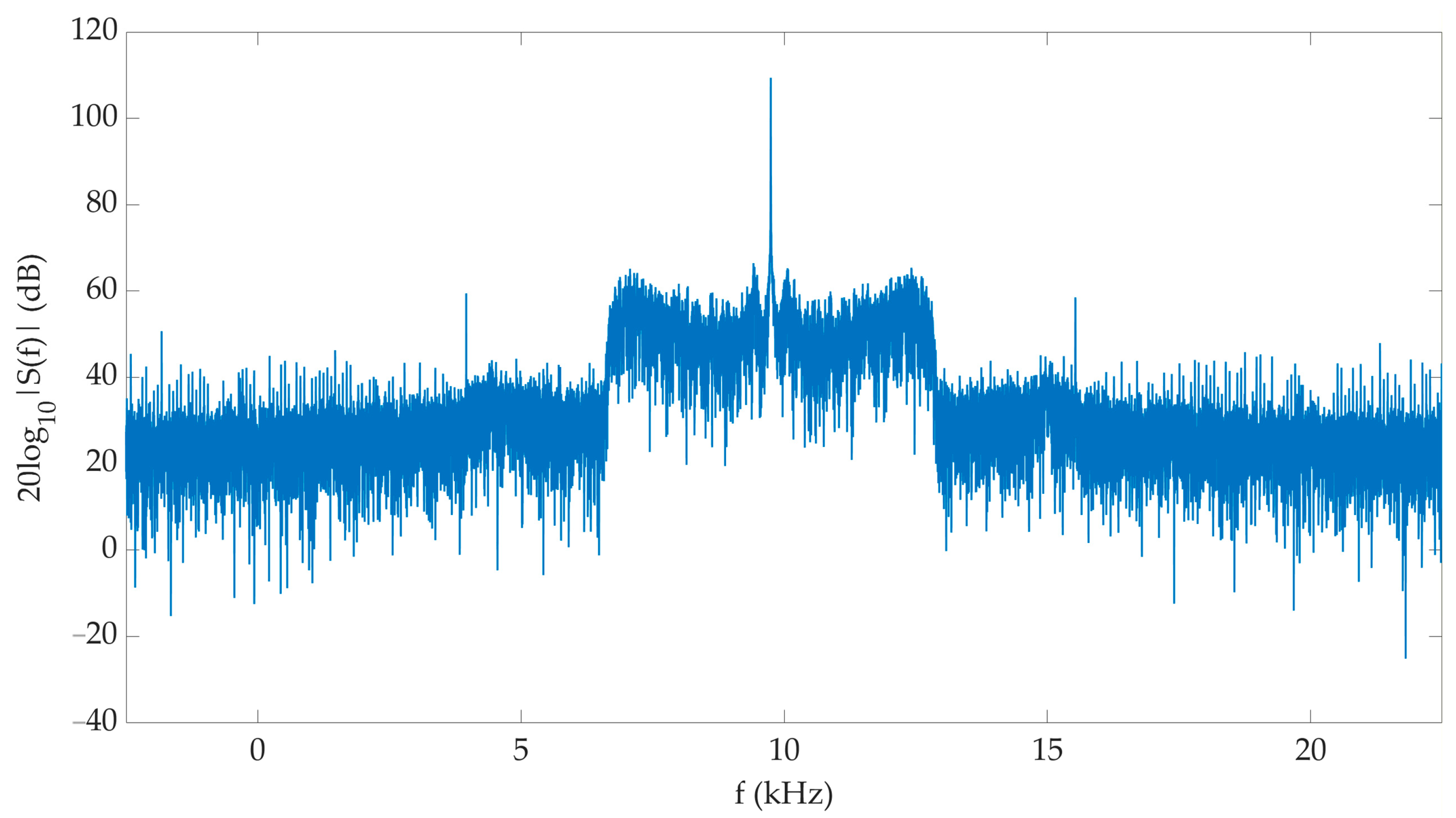- Tretter, S.A. (Ed.) Amplitude Modulation. In Communication System Design Using DSP Algorithms with Laboratory Experiments for the TMS320C6713TM DSK; Springer: Boston, MA, USA, 2008; pp. 121–132. ISBN 978-0-387-74886-3. [Google Scholar]