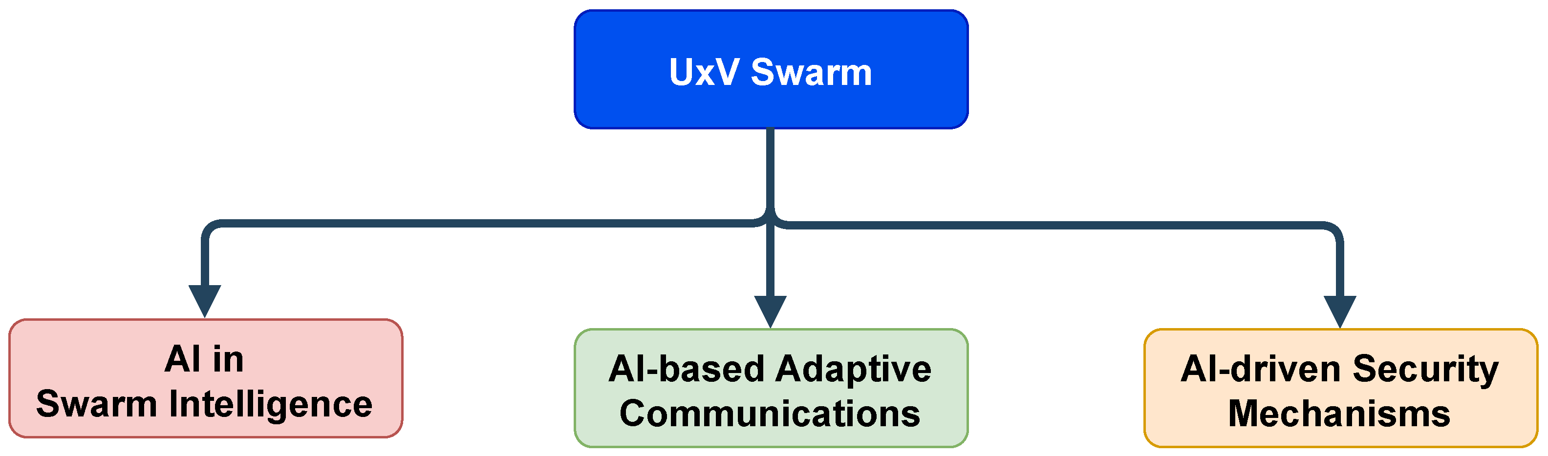 APA StyleDimos, A., Skoutas, D. N., Nomikos, N., & Skianis, C. (2025). A Survey on UxV Swarms and the Role of Artificial Intelligence as a Technological Enabler. Drones, 9(10), 700. https://doi.org/10.3390/drones9100700