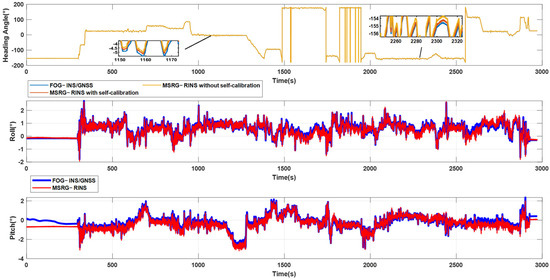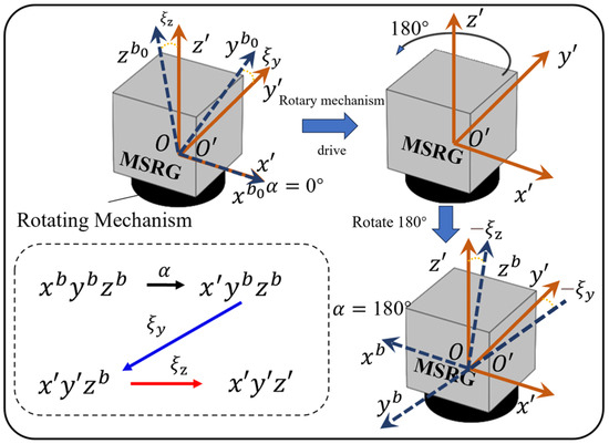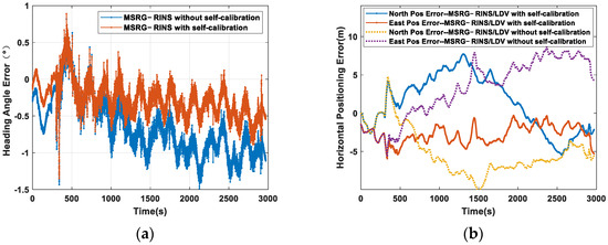 - An error analysis was conducted on the MSRG-specific bias. A reciprocating rotation path with a period of 4π was designed. Additionally, LDV was integrated to provide velocity observations for the MSRG–RINS, thereby enhancing the accuracy and robustness of the system state estimation.
