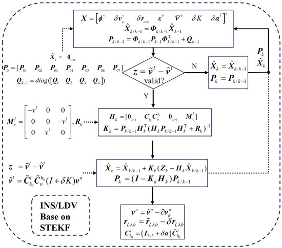 3.3. Combined RINS/LDV Navigation Method Based on STEKF