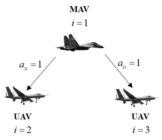 The relative position between MAV and virtual leader can be set to 0, which means that the UAV follows the reference value. Then, the desired geometric pattern can be achieved by adjusting the relative position between MAV and UAV , where , , are set according to task requirements.