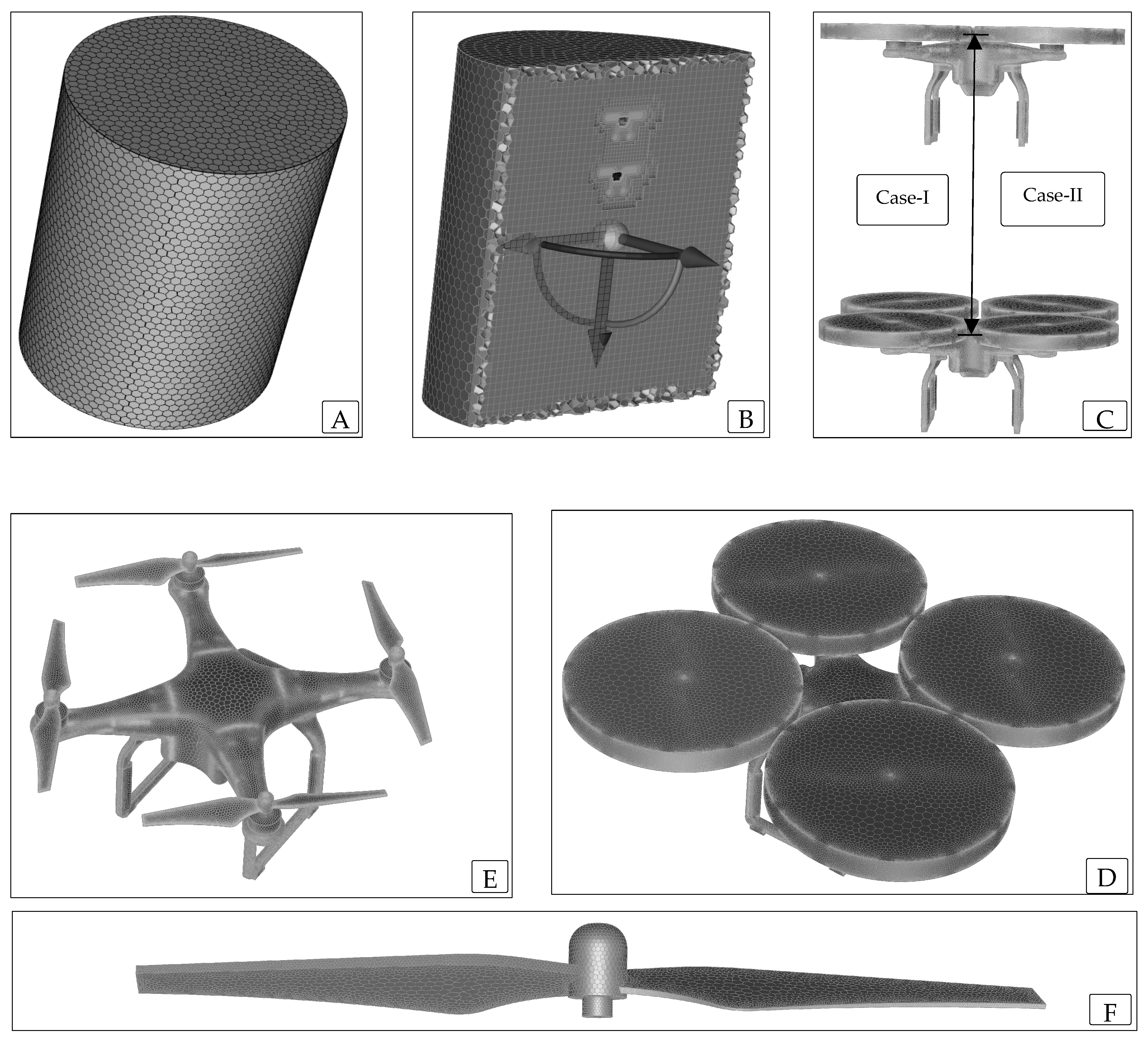 - Yilmaz, E.; Hu, J. CFD study of quadcopter aerodynamics at static thrust conditions. In Proceedings of the ASEE Northeast 2018 Annual Conference, West Hartford, CT, USA, 27–28 April 2018. [Google Scholar]