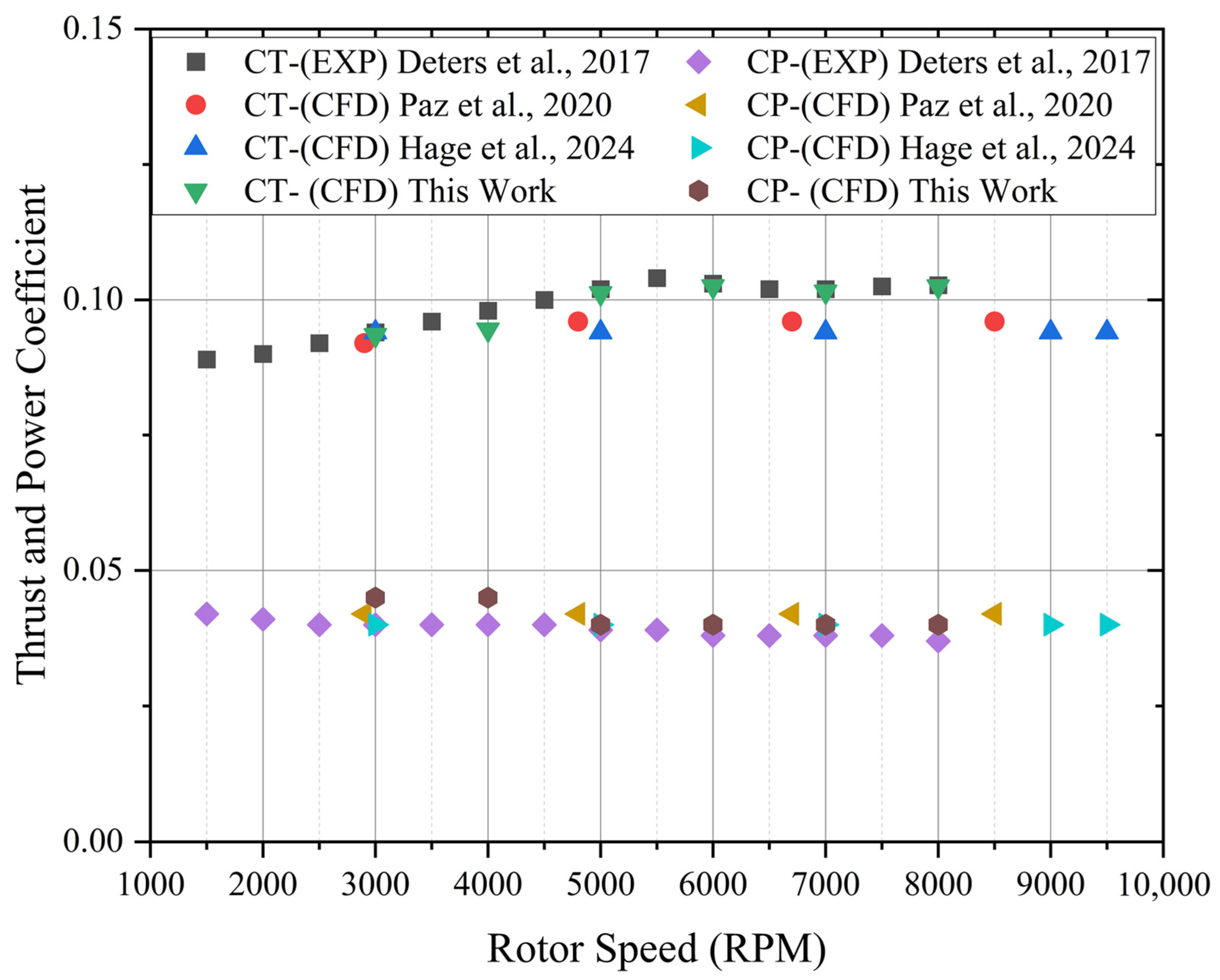 - Oktay, T.; Eraslan, Y. Computational fluid dynamics (CFD) investigation of a quadrotor UAV propeller. In Proceedings of the International Conference on Energy, Environment and Storage of Energy, Osaka, Japan, 29 June–3 July 2020; pp. 1–5. [Google Scholar]