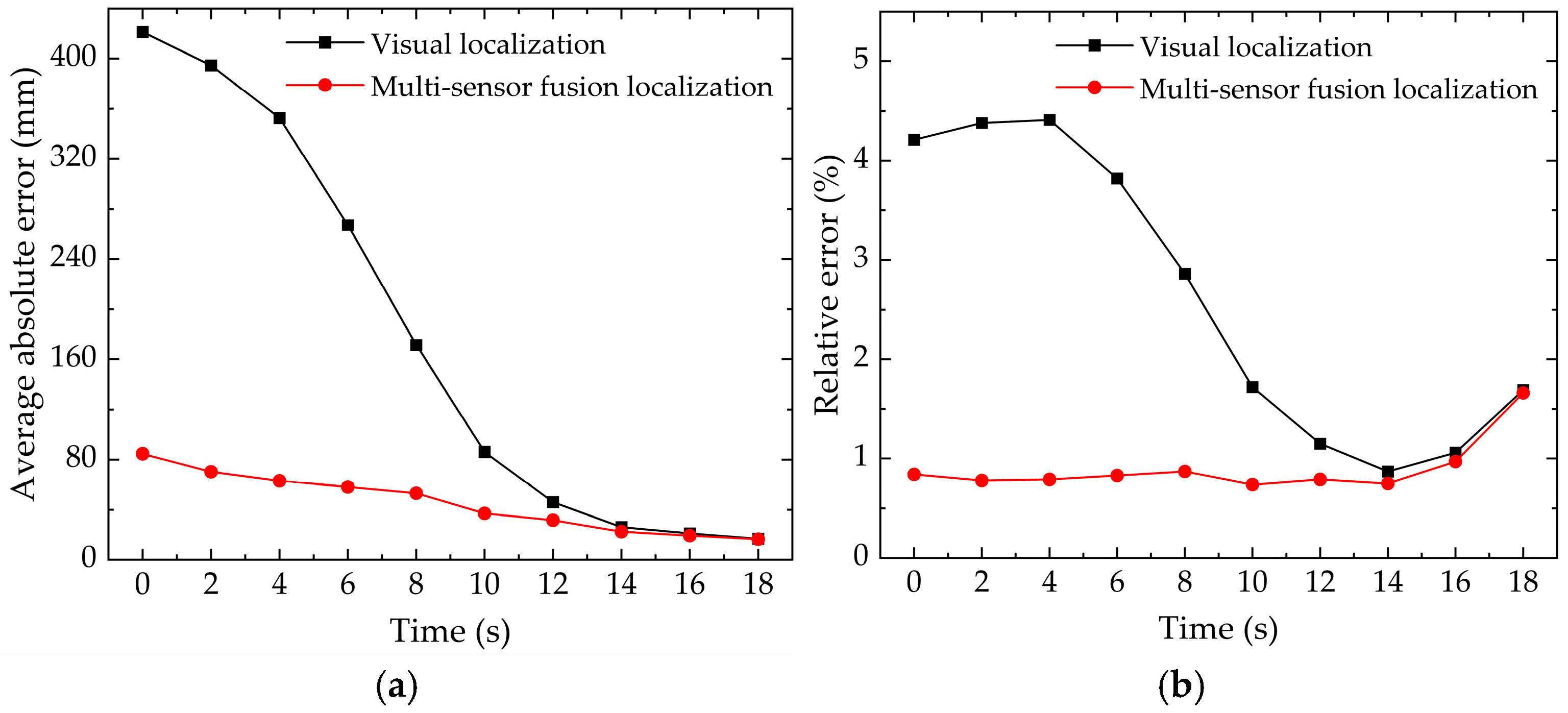 Time/s | Distance/m | Pure Visual Localization | Multi-Sensor Fusion Localization | ||