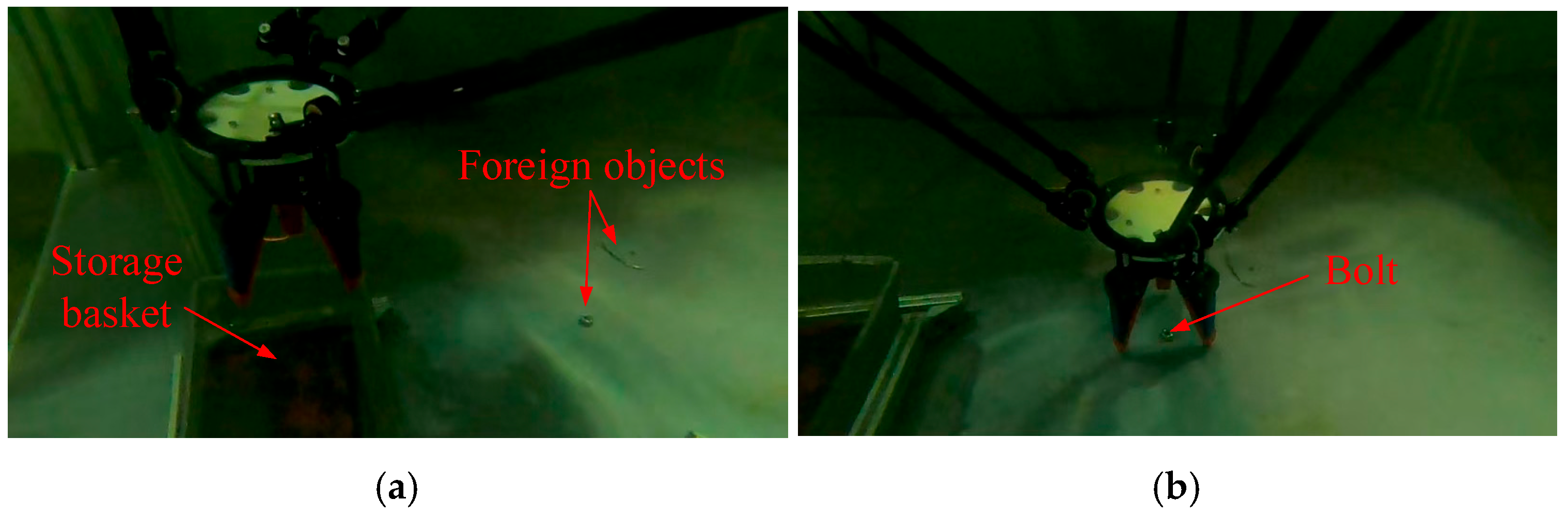 APA StyleZhong, M., Gao, Z., Mao, Z., Lyu, R., & Liu, Y. (2025). An Underwater Salvage Robot for Retrieving Foreign Objects in Nuclear Reactor Pools. Drones, 9(10), 714. https://doi.org/10.3390/drones9100714