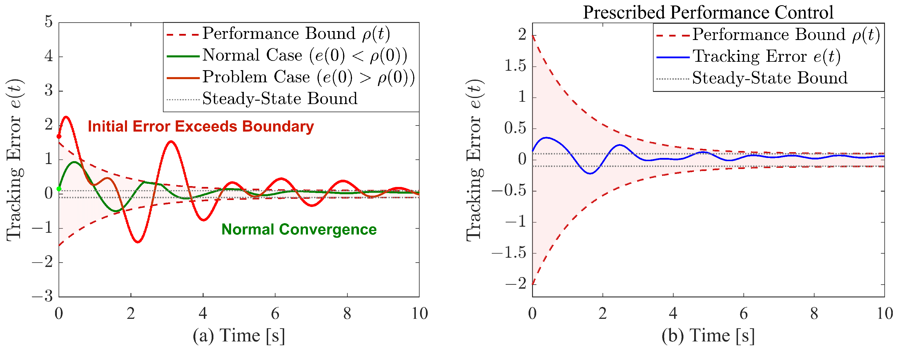 - The transformed error remains strictly confined within the prescribed time-varying asymmetric constraints defined by the performance functions throughout the entire tracking process.