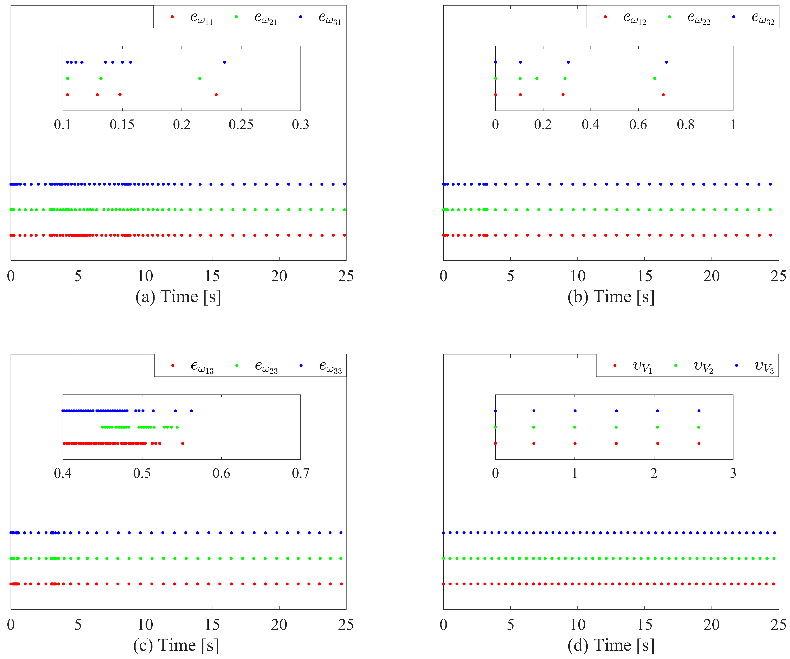 - The proposed control strategy significantly reduces the communication burden and sensor resource consumption in the attitude layer. Furthermore, the existence of a positive minimum inter-event time excludes Zeno behavior, ensuring the practical implementability of the algorithm.
