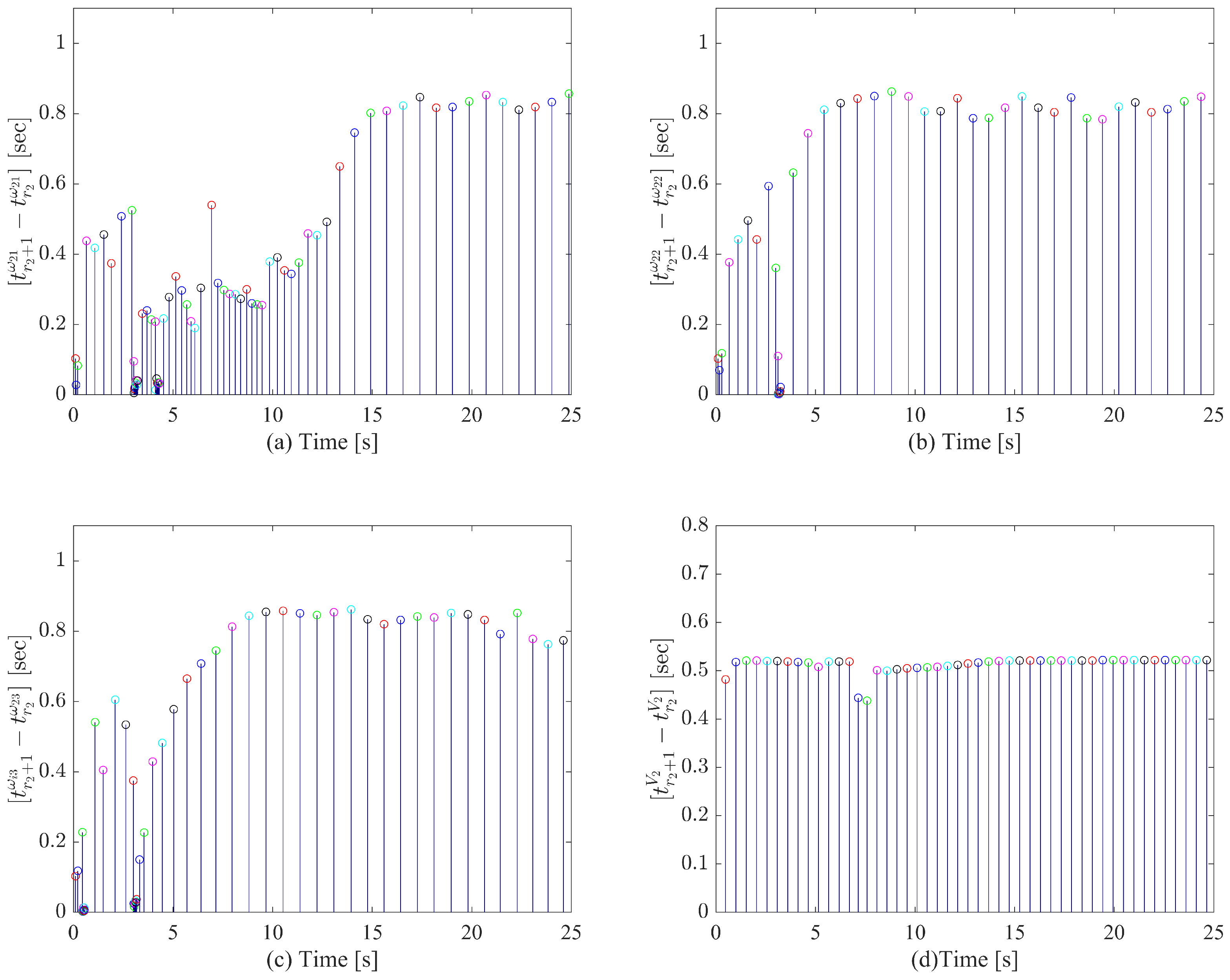 - The proposed control strategy significantly reduces the communication burden and sensor resource consumption in the velocity layer. Furthermore, the existence of a positive minimum inter-event time excludes Zeno behavior, ensuring the practical implementability of the algorithm.