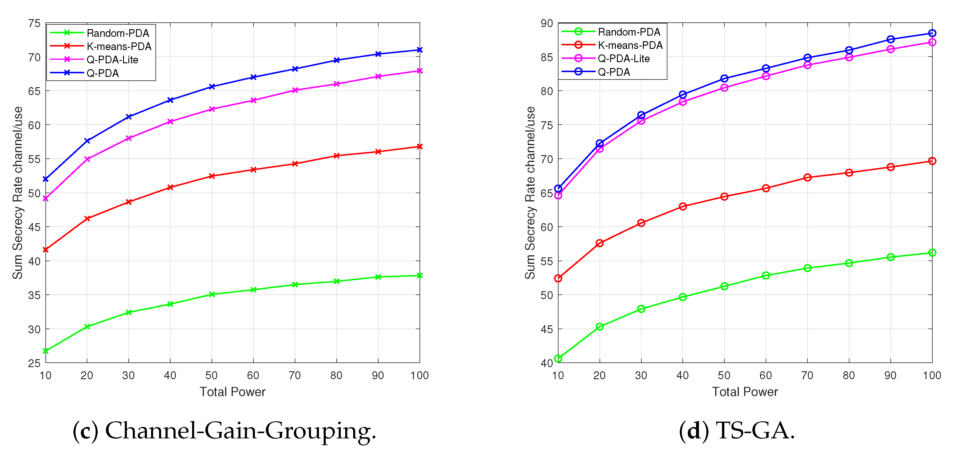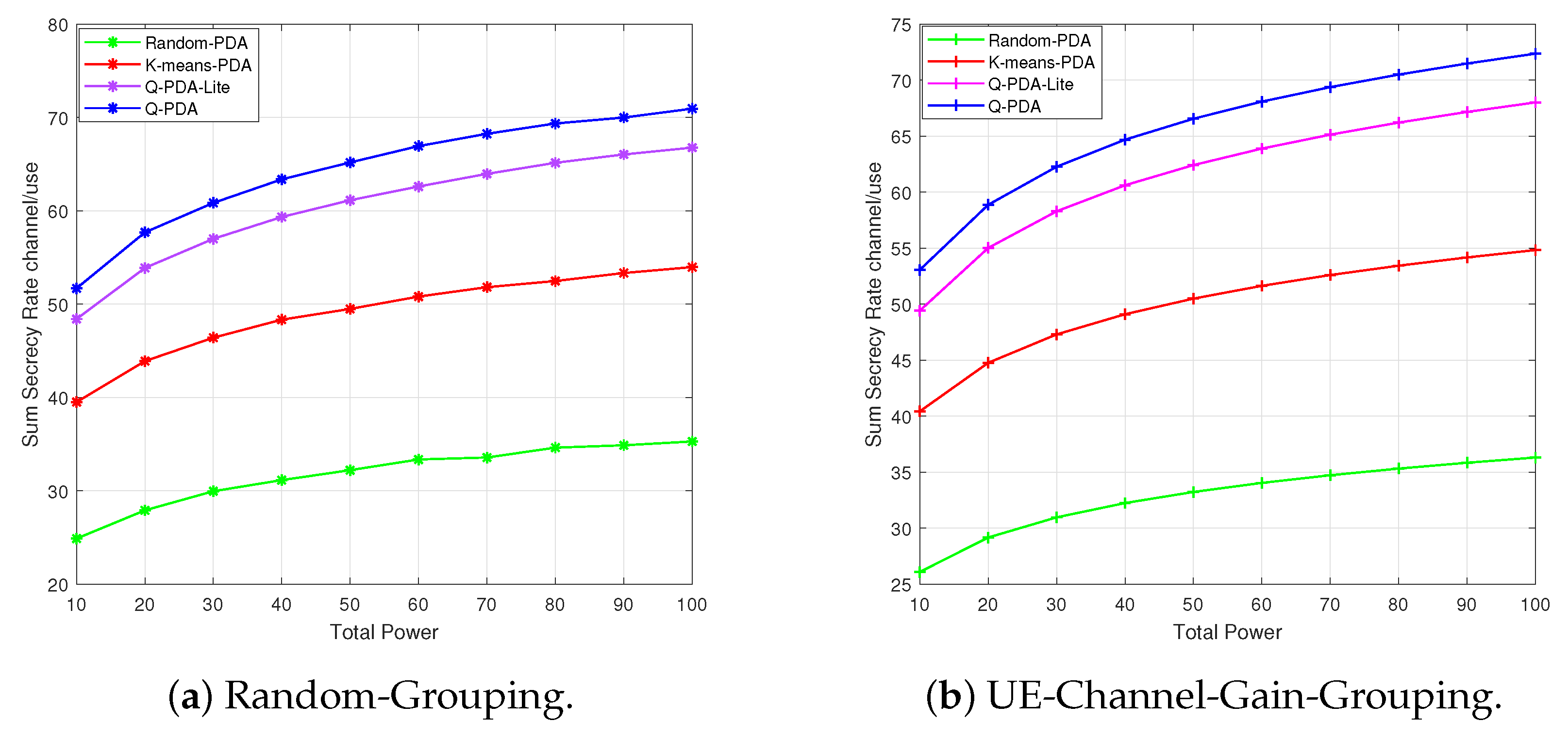 Figure 2, the secrecy performance of Q-PDA and Q-PDA-Lite tends to stabilize in the episode of 2000. Therefore, the number of learning episodes is set to 2000 in the following simulations.