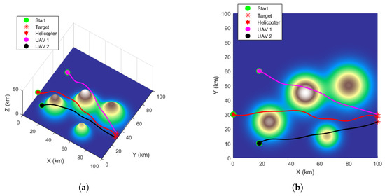 In addition to the extensive simulation results presented, the practical feasibility of the proposed cooperative framework has been preliminarily validated. Initial hardware-in-the-loop simulations and functional field tests were conducted using an AC332 helicopter platform and ASN-209 fixed-wing UAVs (Xi’an ASN Technology Group, Xi’an, China). While not as exhaustive as the simulations, these tests successfully demonstrated the core functionalities of the RL-GWO planner in generating and executing coordinated trajectories for heterogeneous vehicles, confirming the significant practical potential of our proposed method.