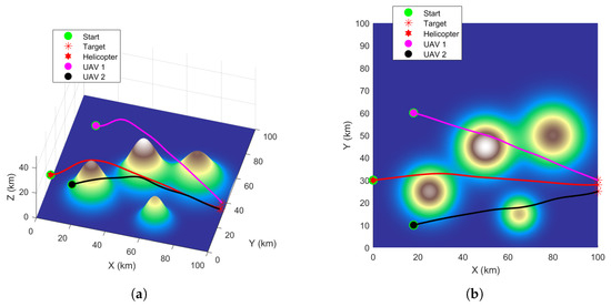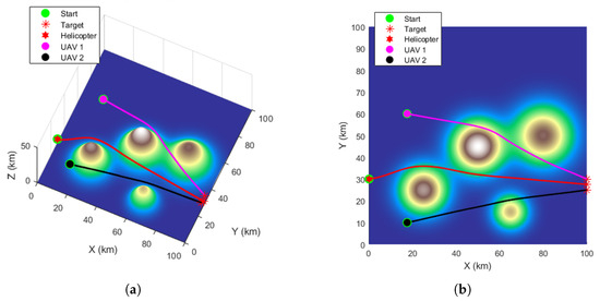 Simulation Platform and Environment: All experiments were conducted on the MATLAB R2021b platform, with a computer configuration of Intel Core i7-9700 CPU@3.00 GHz, 16 GB RAM. The mission airspace was set as a 100 km × 100 km × 50 km 3D space, containing simulated mountainous terrain with complex undulations generated by multiple Gaussian functions.