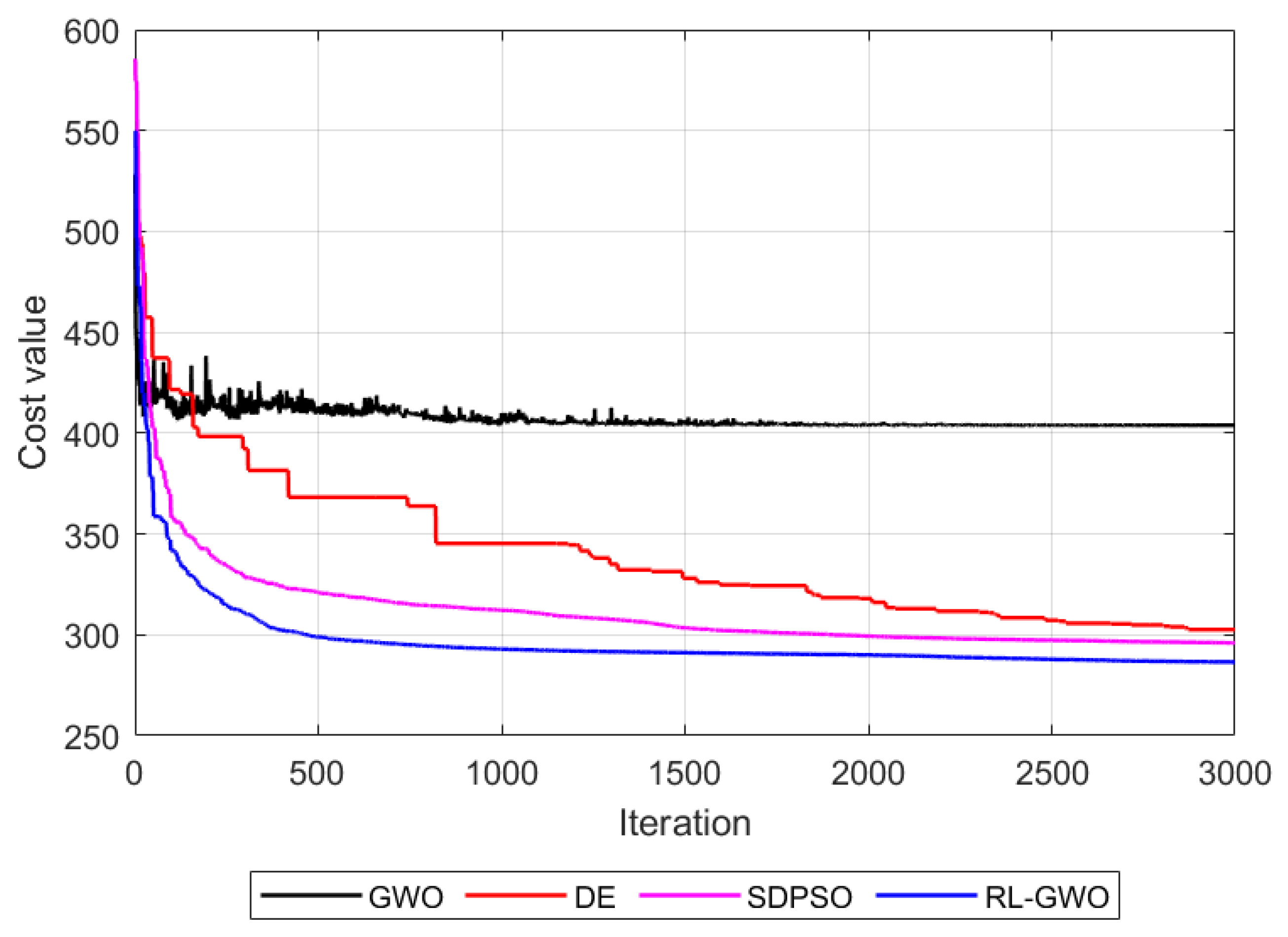- Experimental results show the proposed RL-GWO significantly outperforms standard GWO and DE in both convergence speed and final solution quality for cooperative path planning.