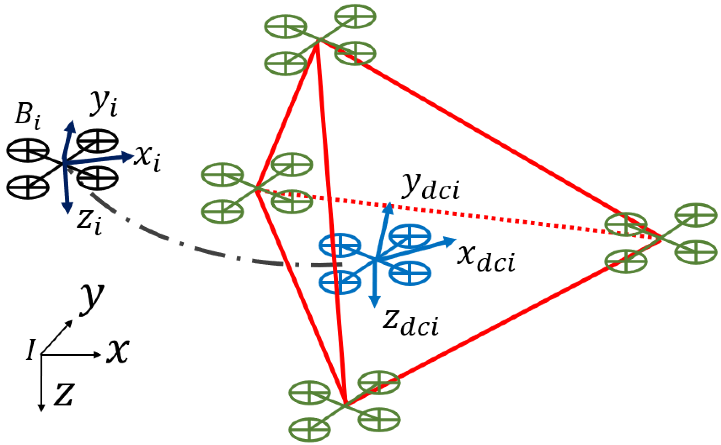 , which remains constant unless the network topology changes. As a result, any follower with access to the leaders’ positions can calculate both its own and its neighbors’ desired positions, enabling decentralized and collision-free convergence.