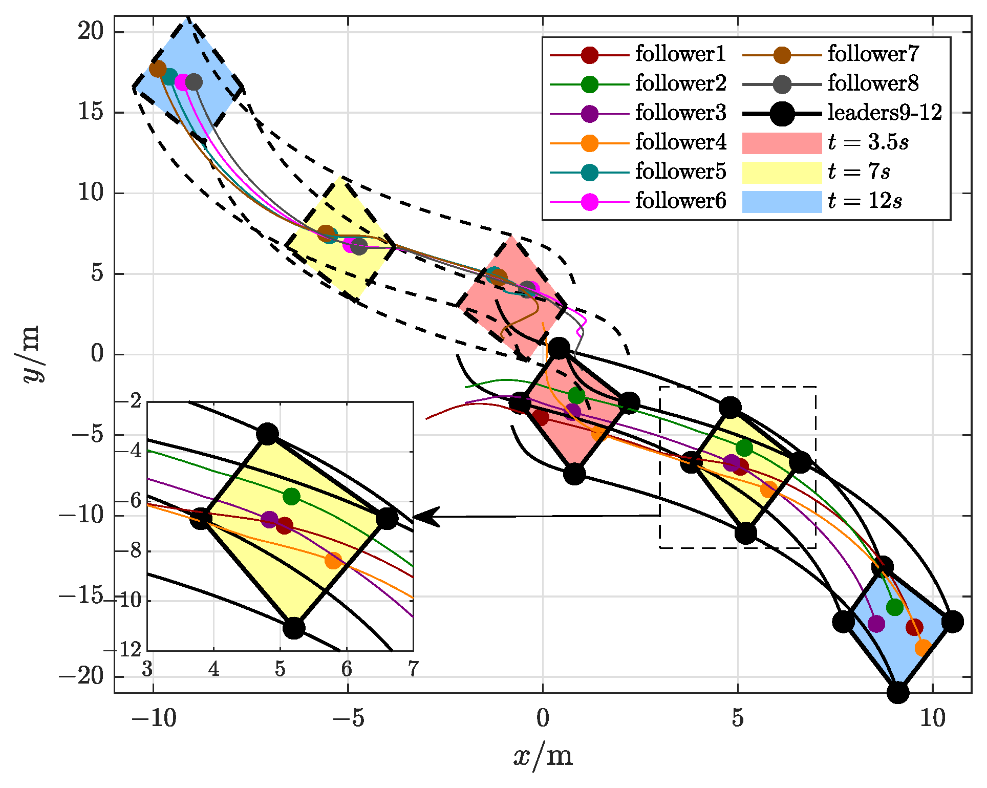 - Ji, M.; Ferrari-Trecate, G.; Egerstedt, M.; Buffa, A. Containment Control in Mobile Networks. IEEE Trans. Autom. Control 2008, 53, 1972–1975. [Google Scholar] [CrossRef]