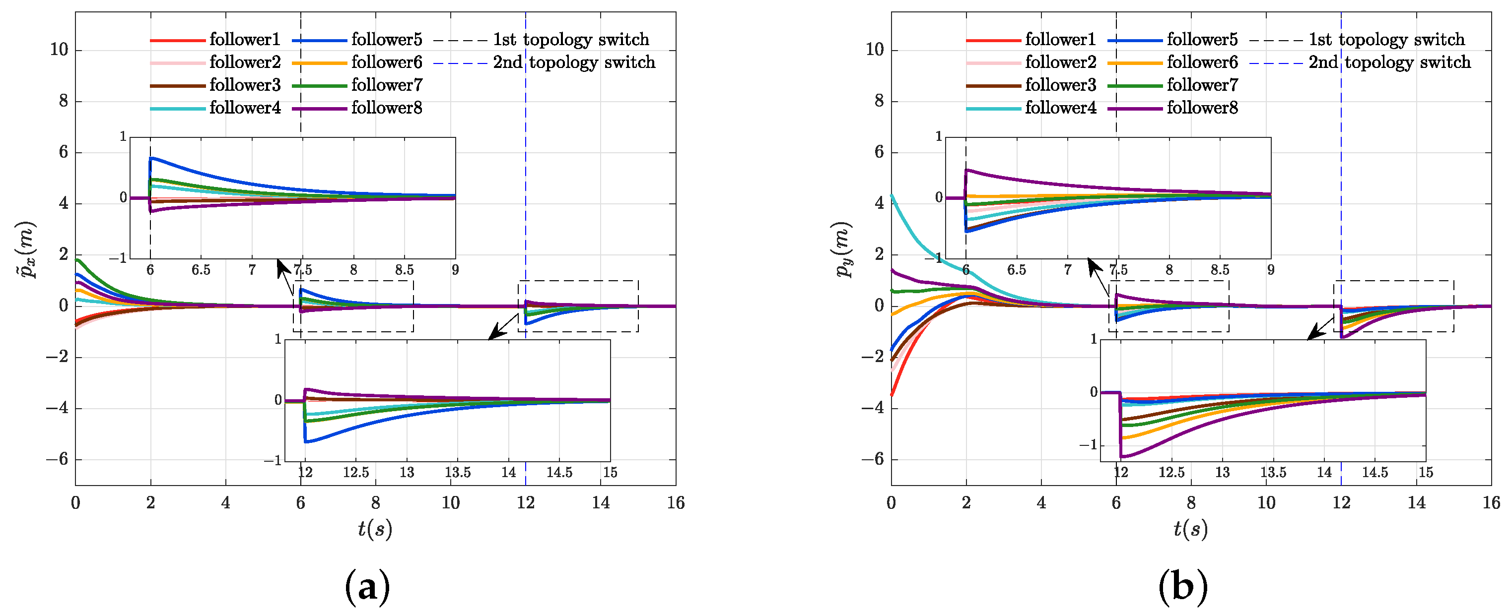 4.1. Fixed-Time Convergence Under Switching Topologies