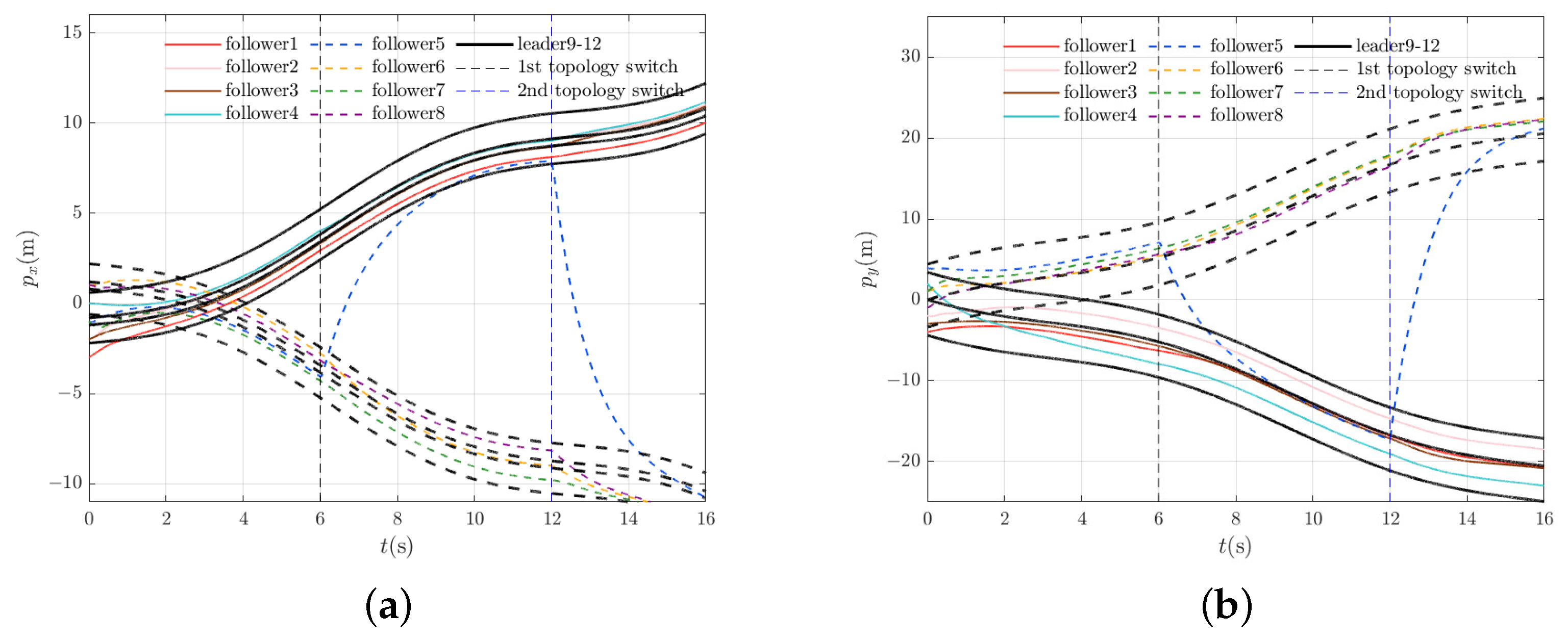 - Li, W.; Shi, L.; Shi, M.; Lin, B.; Qin, K. Cooperative Formation Tracking of Multi-Agent Systems over Switching Signed Networks. IEEE Trans. Control Netw. Syst. 2025, 1–11. [Google Scholar] [CrossRef]