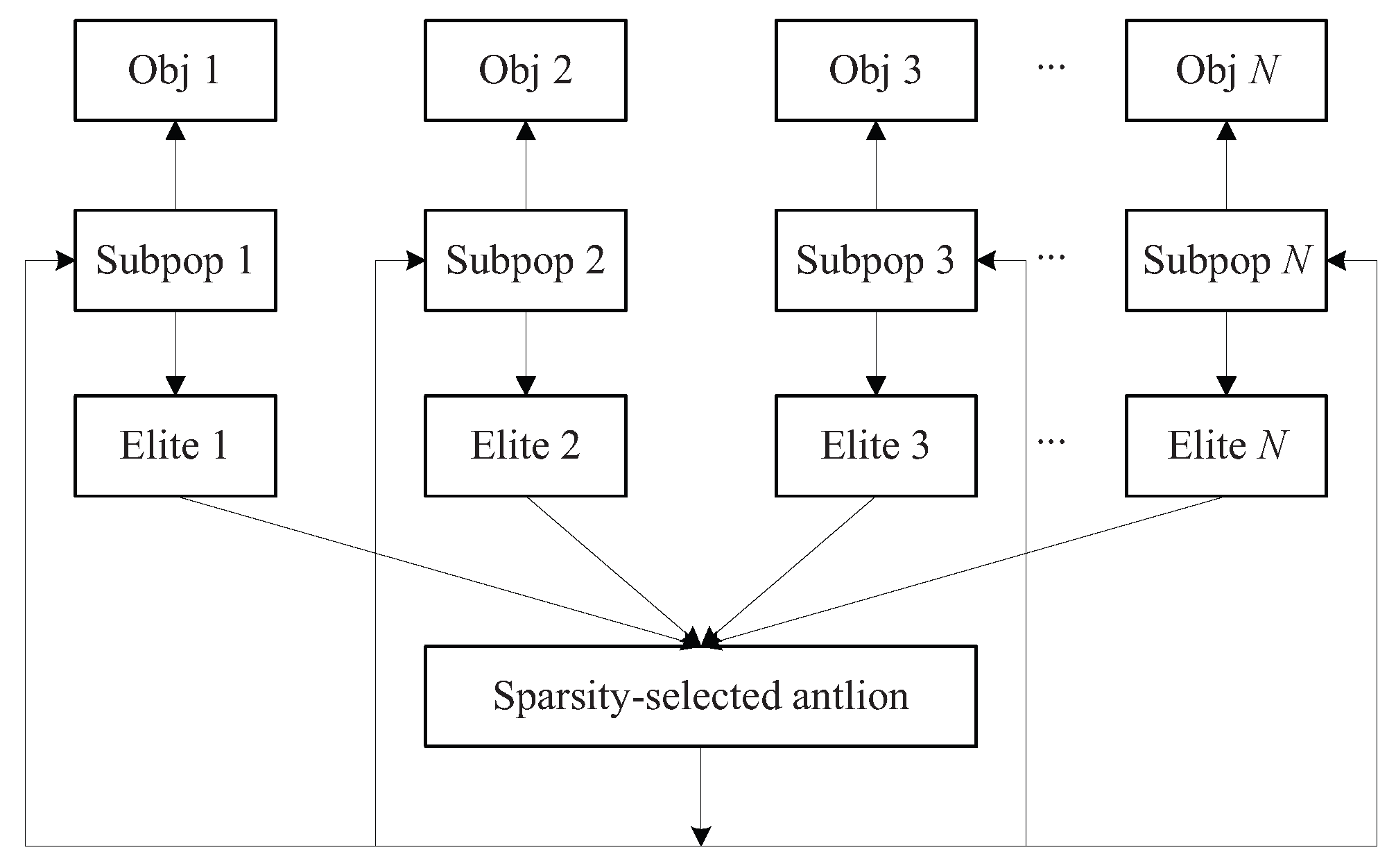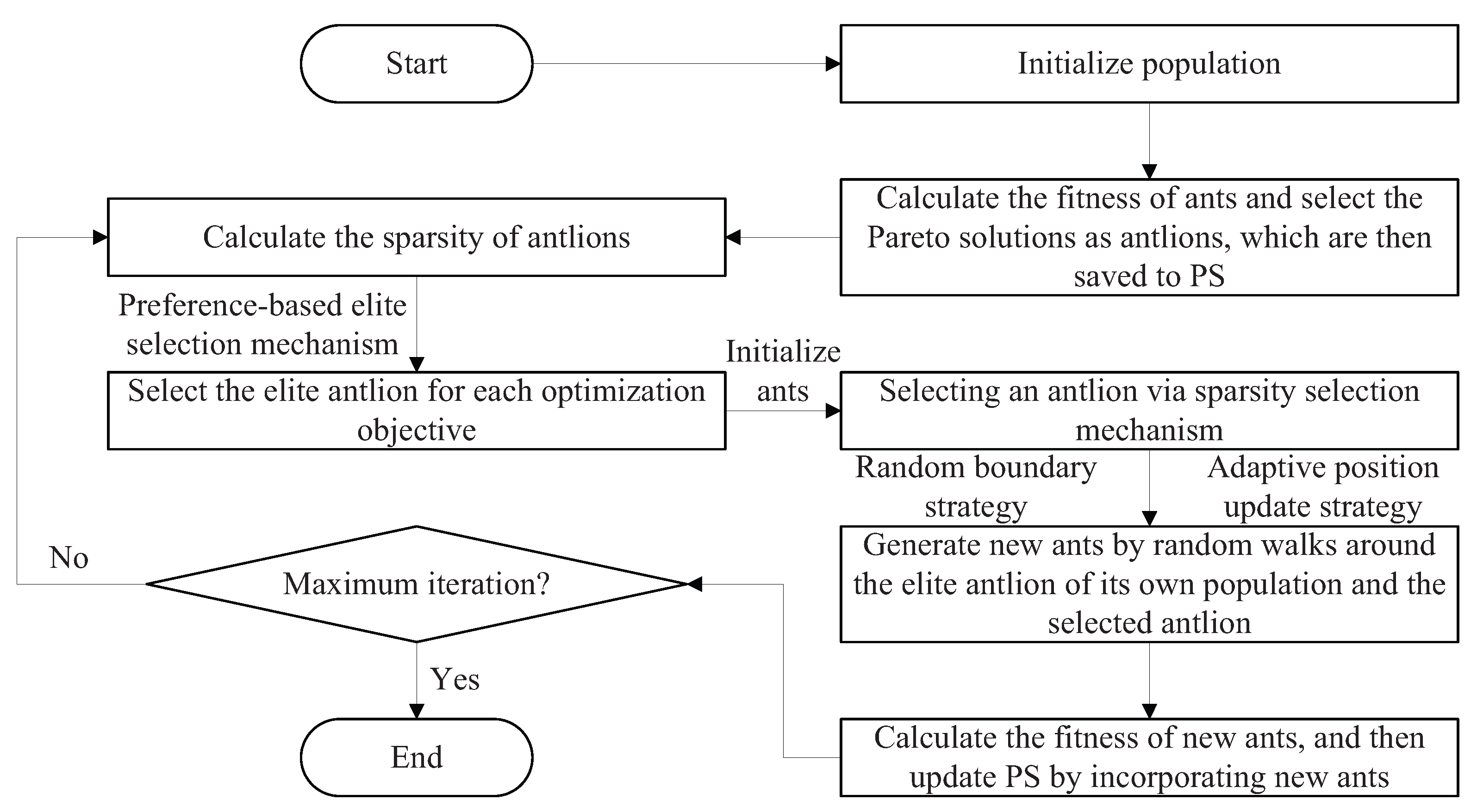 25] is a swarm intelligence algorithm proposed by Seyedali Mirjalili in 2015. It simulates the foraging behavior of antlions trapping ants. The main steps include random walking of ants, setting traps by antlions, ants falling into traps, antlions preying on ants, and antlions rebuilding traps. It has been widely applied in various fields, including computer science, engineering, energy, and operations management due to its ease of implementation, strong scalability, and high flexibility [