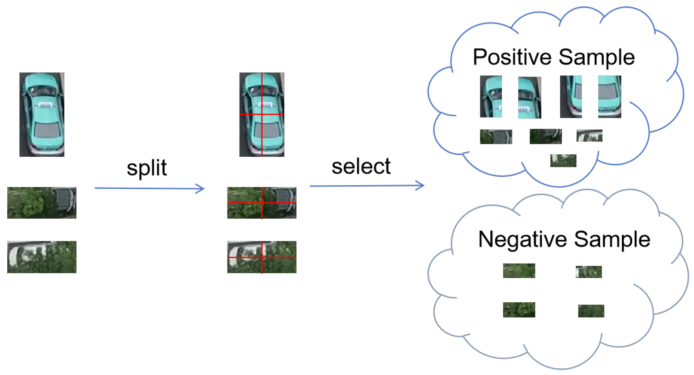 To avoid requiring the detection network to directly handle the complex problem of occlusion, we proposes a Vehicle Parts Perception module (VPP module) to perceive vehicle part features based on local semantic characteristics. This method divides the suspicious region image blocks—deemed to pass by the region consistency measurement module—into several smaller patches, then extracts semantic features from each patch and classifies them according to vehicle part characteristics. Considering that specific vehicle parts (e.g., windows, wheels) are often too small under the UAV’s perspective, making annotation and detection challenging, the method does not classify specific part types, but instead categorizes whether a region contains vehicle parts. By analyzing local information, this approach confirms the presence of a object without relying on a complete, holistic view of the entire object.