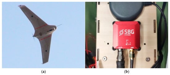 Figure 3. Fixed-wing UAV platform. (a) Skywalker X8; (b) Sensor Data Acquisition System.