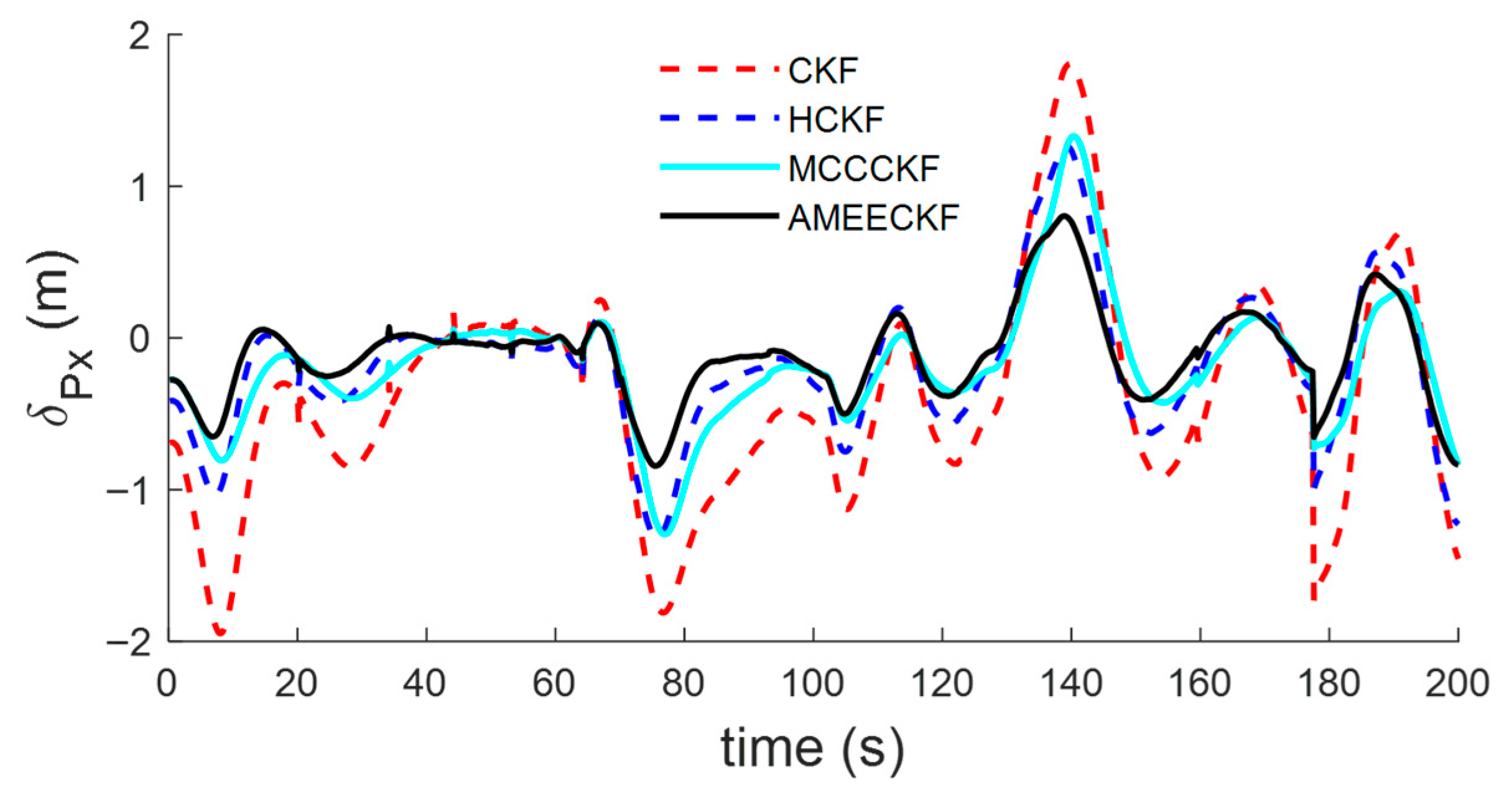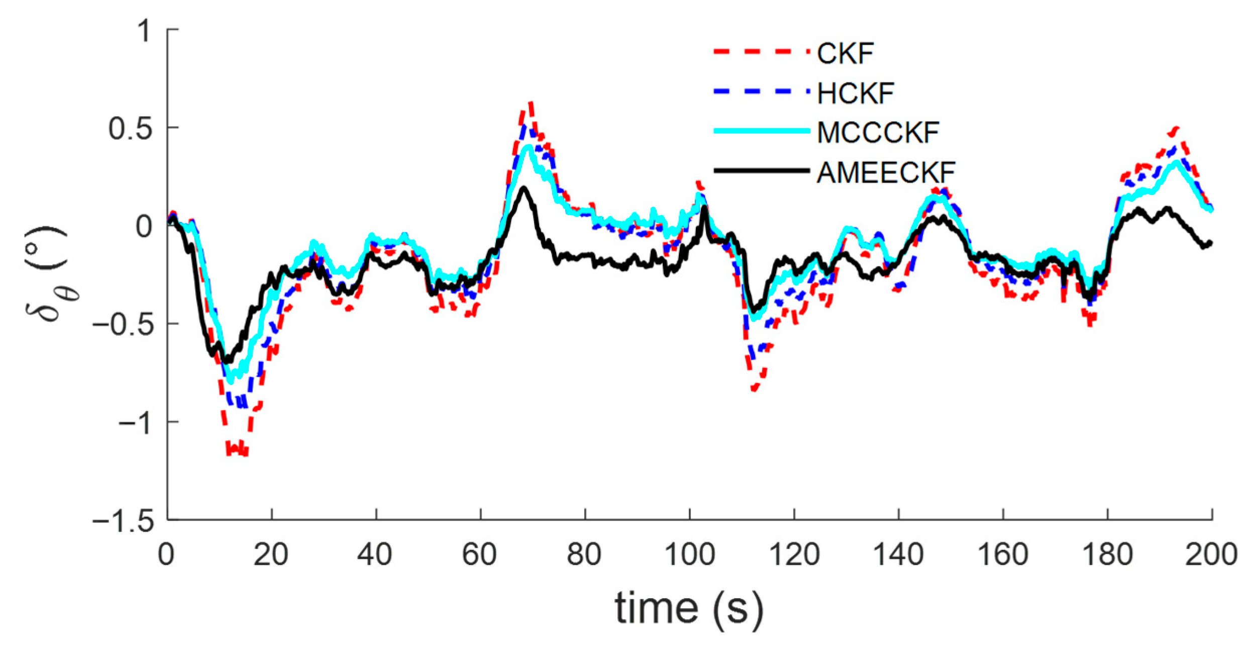 - To address the issue that fixed kernel bandwidth has a significant impact on filtering accuracy, a kernel bandwidth adjustment factor is designed, the kernel bandwidth is corrected in real time based on innovations, thereby developing the AMEECKF.