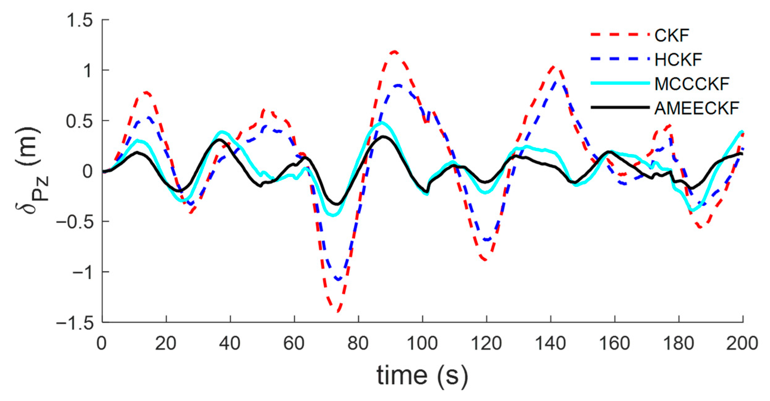 APA StyleLiu, X., Zhao, H., Liu, Y., Ling, S., Chen, X., Yang, C., & Cao, P. (2025). Adaptive Minimum Error Entropy Cubature Kalman Filter in UAV-Integrated Navigation Systems. Drones, 9(11), 740. https://doi.org/10.3390/drones9110740