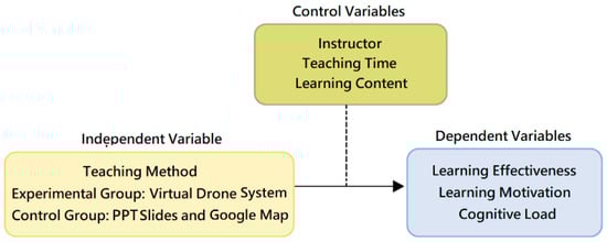 Designing and evaluating technology-based learning systems requires understanding learners’ psychological and behavioral processes. To comprehensively evaluate the instructional effectiveness of the virtual drone system developed for geography education, this study focused on four core dimensions: learning outcomes, motivation, cognitive load, and learner experience. These aspects capture students’ achievements in knowledge, skills, and attitudes, while illuminating the cognitive and affective processes engaged during interactive learning activities.